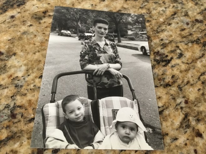 In a photo my husband took of me almost sixteen years ago, I am leaning on the double stroller in front of me, my two babies are perched inside, and the slightest hint of a smile plays on my lips.